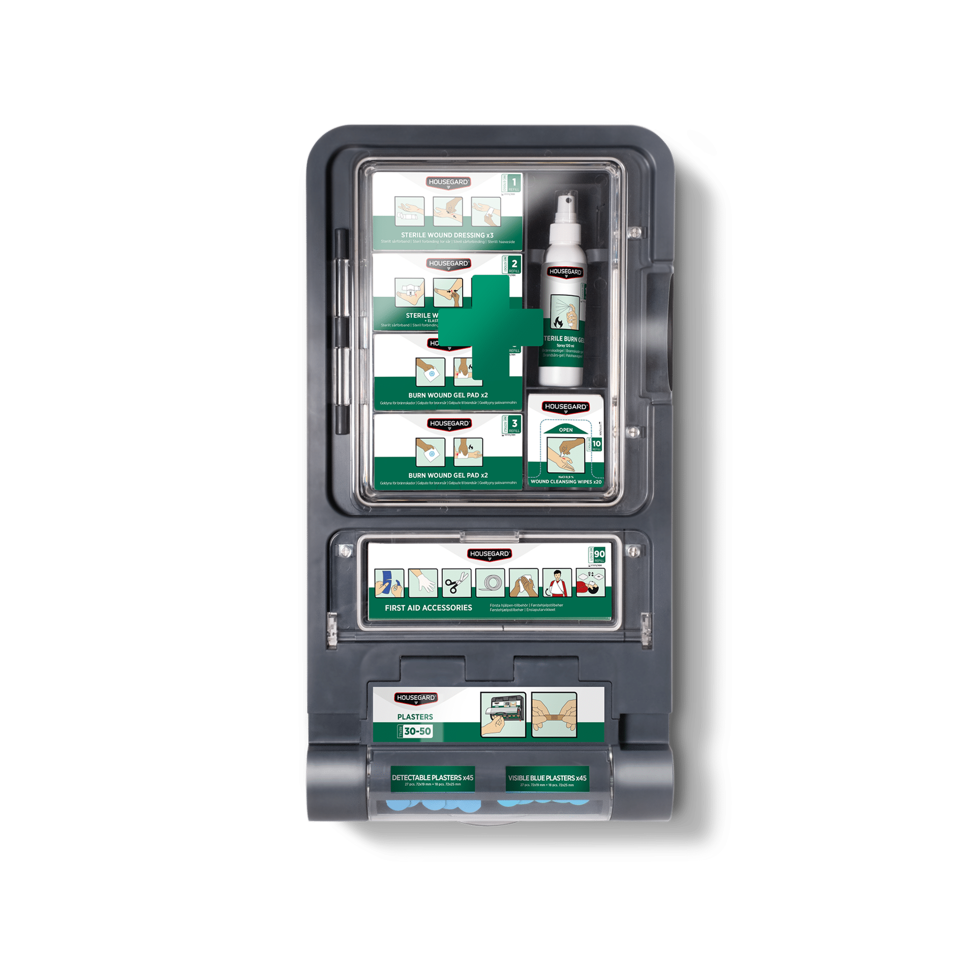 Kattava ensiapuasema haavojen ja palovammojen ensiapuun. Soveltuu ravintoloihin, suurkeittiöihin ja työpaikoille, joissa on palovammariski.