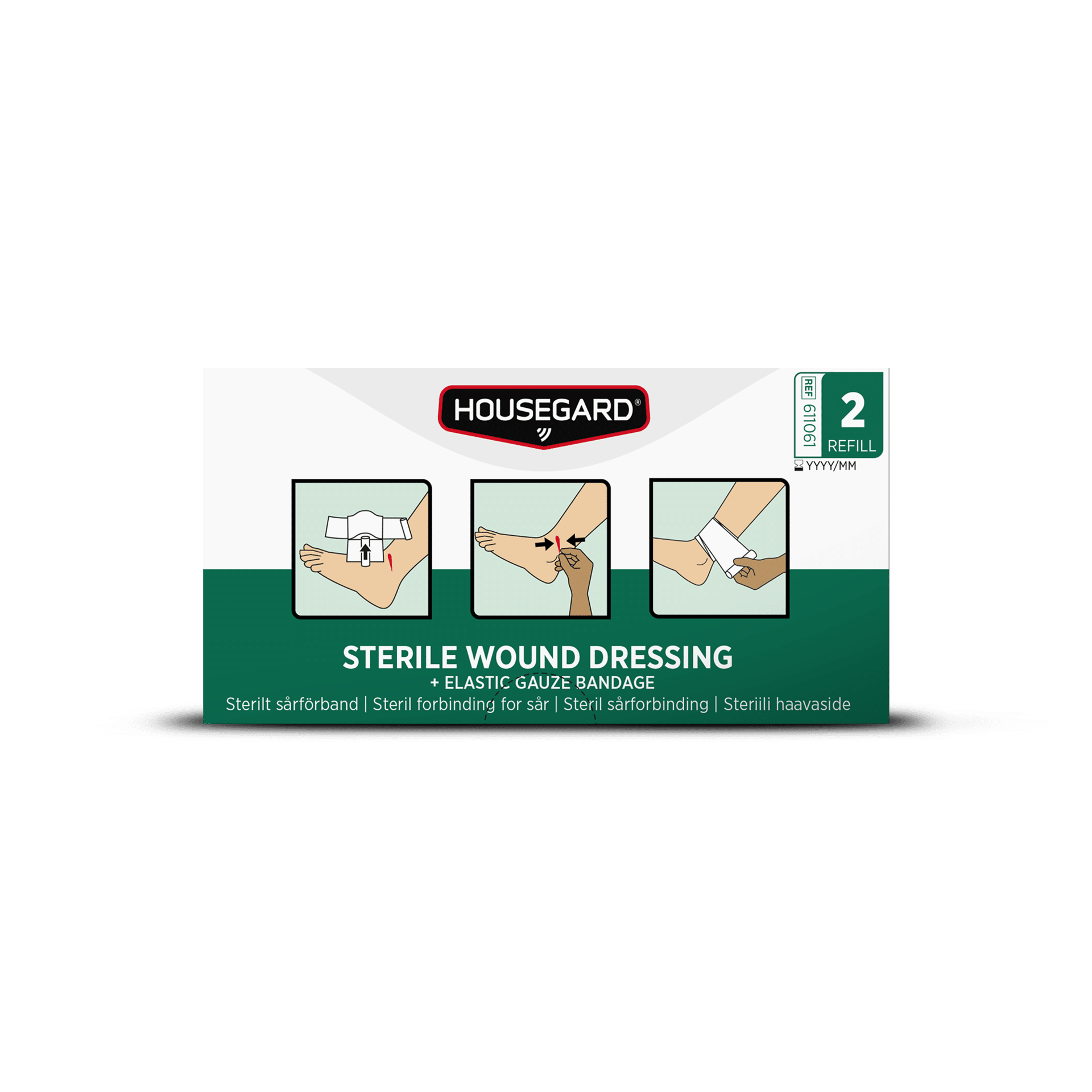 Steriili haavasidosrefill suurempien haavojen hoitoon työpaikalla. Sidoksessa on imukykyinen kompressi ja itsekiinnittyvät reunat nopeaa käyttöä varten.