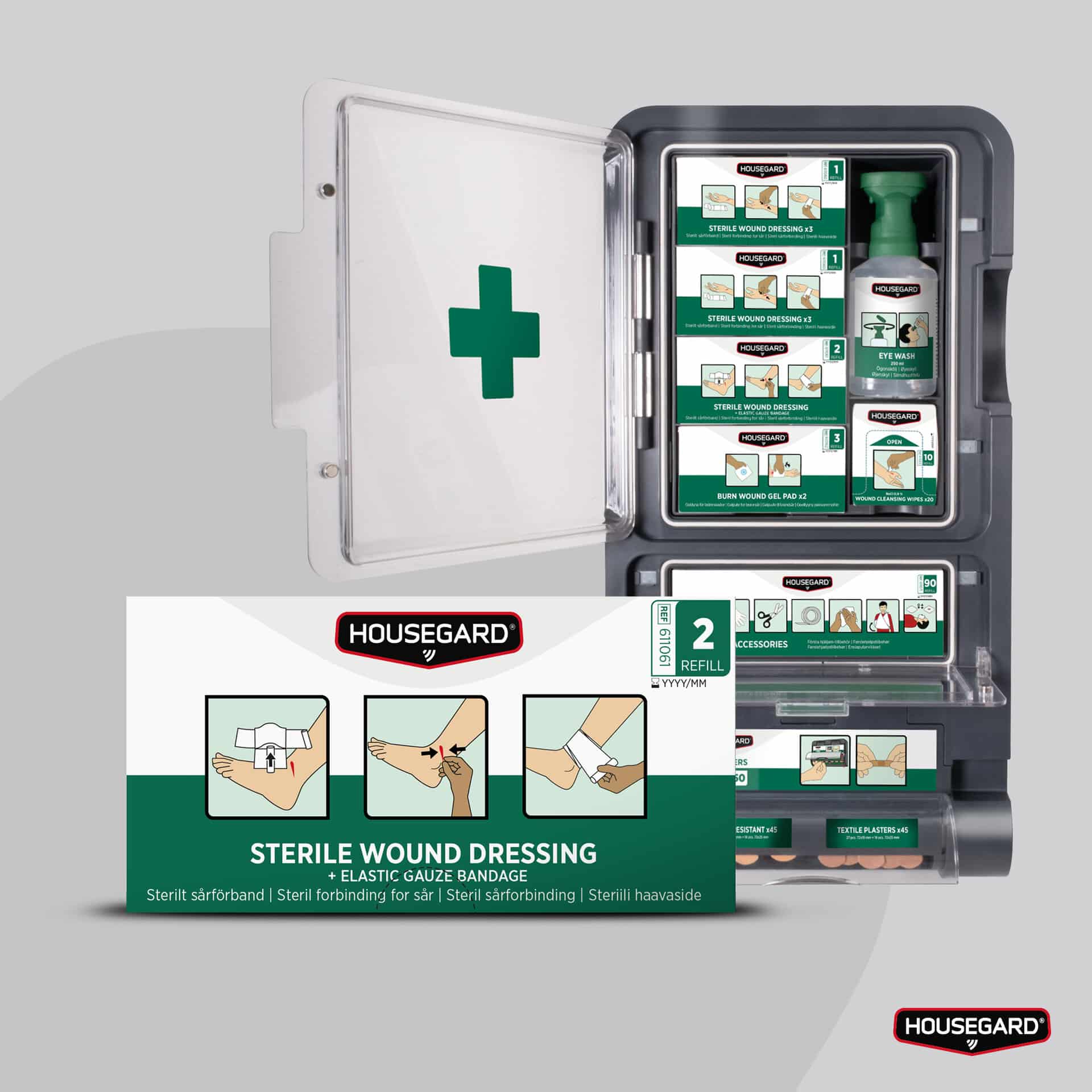 Sidetarvikkeet ovat yhteensopivia Housegardin ensiapuasemien sekä muiden valmistajien vastaavien tuotteiden kanssa.